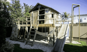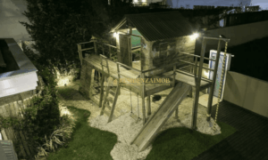 - Área de Lazer Infantil: Gramado com casinha e parquinho para as crianças.